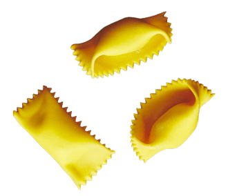 Named after the ‘plin’ or pinch used to separate each agnolotto. This Piemontese shape is traditionally tiny and filled with a succulent meat braise. Popularized in North America by Thomas Keller, where they’re usually seen in a much larger form. The pocket created by the closure works wonderfully to gather condiment.